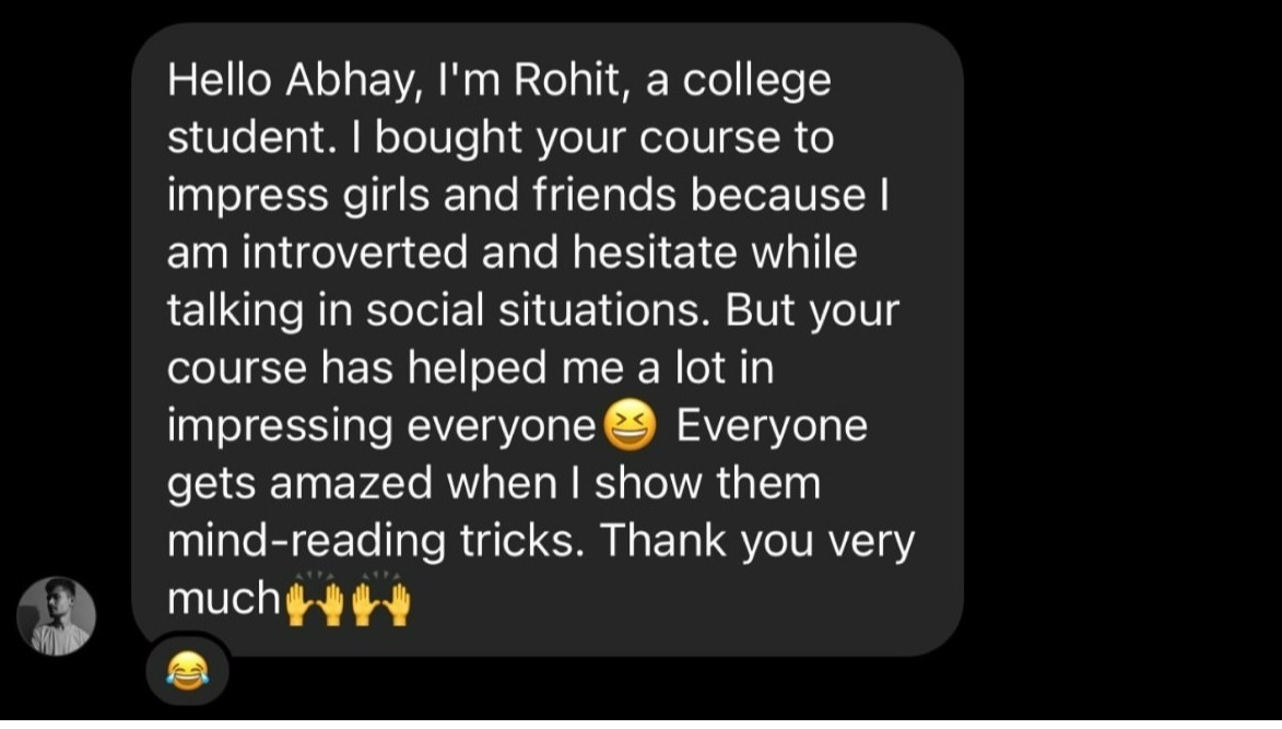 (India’s #1 mentalism course will teach you 15+ advanced mindreading tricks that are guaranteed to make you the most interesting person wherever you go in just 7 days)