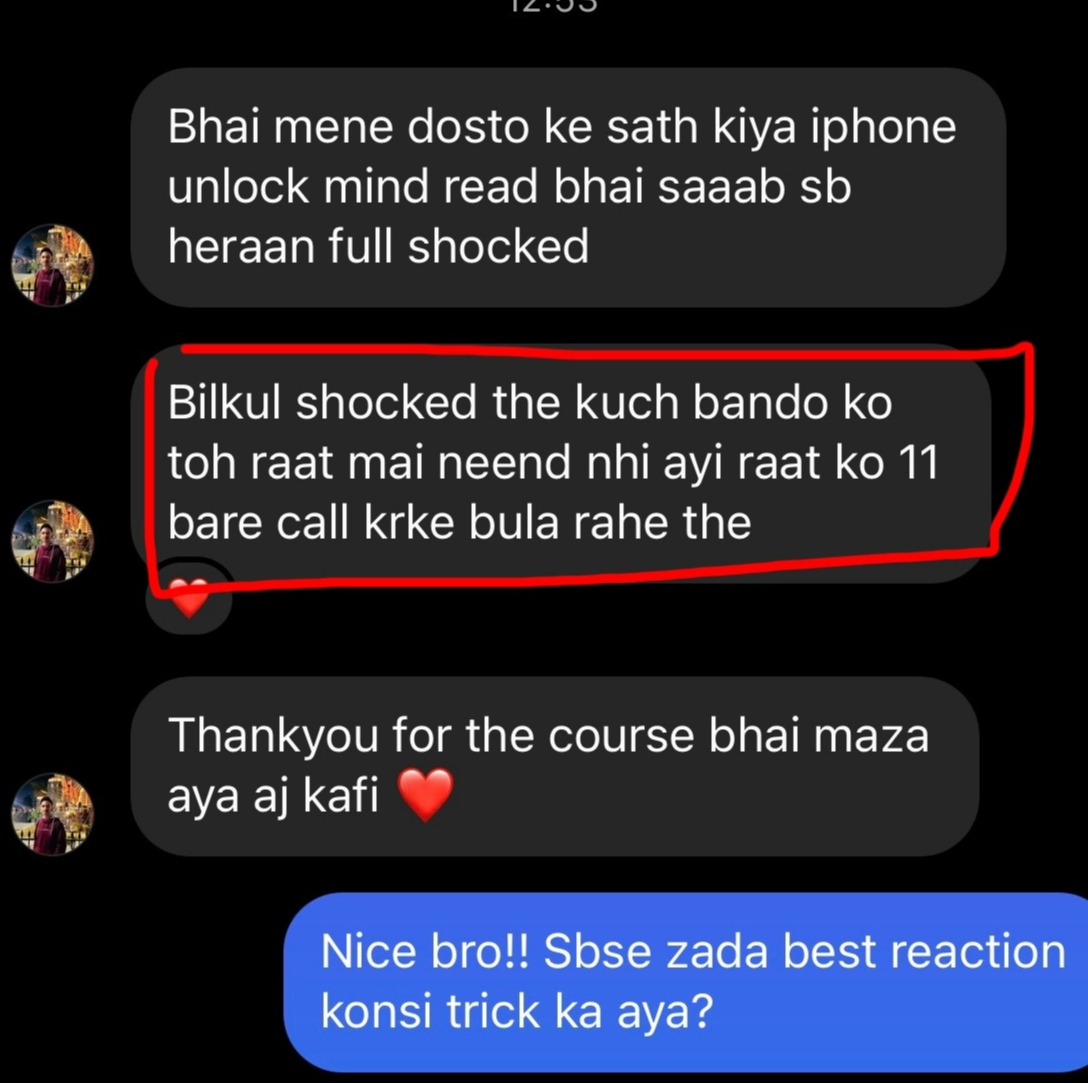 Because we have the most number of success stories of people becoming mind readers, we are teaching the Original effects that you see in online videos, We are teaching with 7+ years of performing experience, we are providing the 24/7 whatsapp support because we know how valuable this course is.